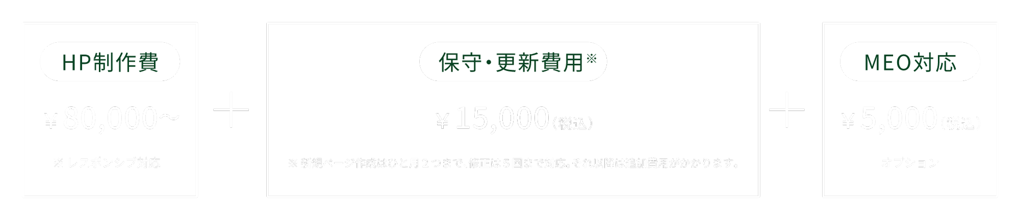 - 保守・更新費用(2回/月)・サーバー費用すべて込み 月々15,000円(税込)